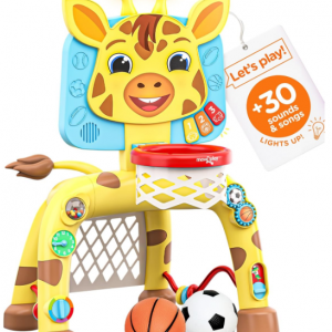 Move2Play, Giraffe Basketball Hoop & Soccer Goal Activity Center | 30+ Sounds & Lights | 1, 2, 3+ Year Old Gift & Birthday Present | 6, 12, 18, 24+ Month Toy For Baby, Toddler, Boys, & Girls