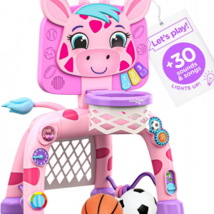 Move2Play, Giraffe Basketball Hoop & Soccer Goal Activity Center | 30+ Sounds & Lights | 1, 2, 3+ Year Old Gift & Birthday Present | 6, 12, 18, 24+ Month Toy for Baby, Toddler, Boys, & Girls