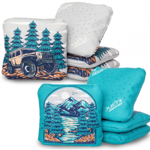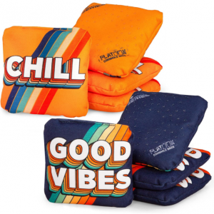 Play Platoon Competition Series Cornhole Bags Set of 8 Regulation Professional Weight Double Sided Slick and Stick with Rubber Sticky Dot Slow Side for Pro Corn Hole Bean Bag Toss Game-Designed in USA