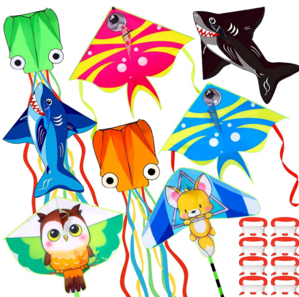 • Kites for Kids: every purchase comes with 8 kites and 8 kite string spools; Come in unique designs of fish (2 pcs), shark (2 pcs), octopus (2 pcs) and owl and squirrel (2 pcs); This wonderful package ensures ongoing fun for your children or even adults; Having multiple kites ensures nobody is left out during kite flying events; And each kite is equipped with 109 yard/ 100 meter kite line that is long enough for you to fly the kite far away from the ground