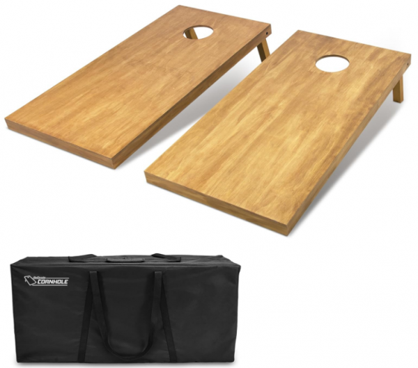 - PREMIUM STAINED FINISH: A professional light brown stain finish gives this set a stylish look that captures the timeless fun of playing bean bag toss with friends and family