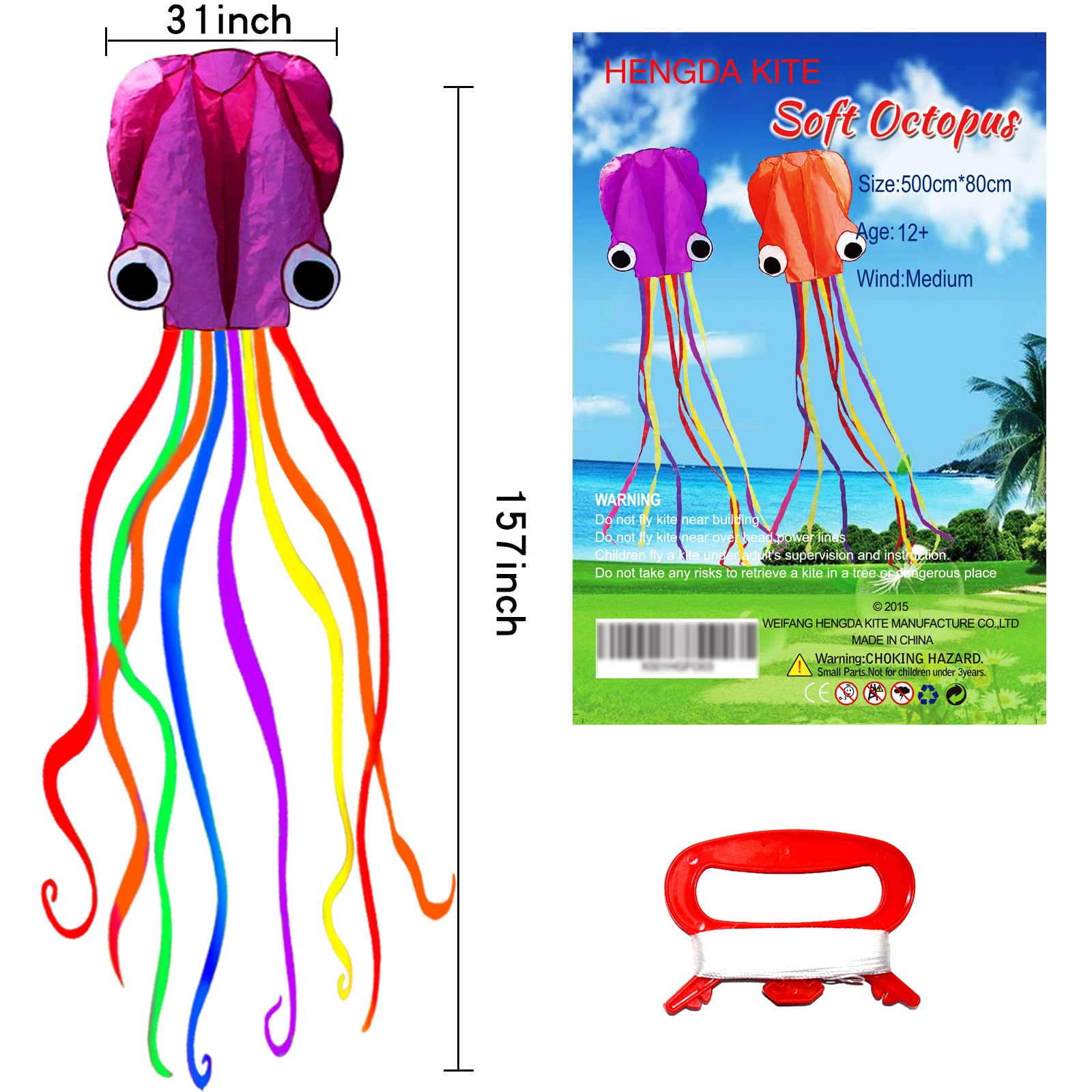 - Give your children the best Present- large and easy to fly kite. Pack 2 Colors,Orange and Purple with Long Rainbow Tails – this is a full 31 inches wide!