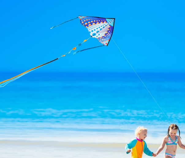 HONBO Large Delta Kite for Kids & Adults,Extremely Easy to Fly Kite for Beach Trip,String Line Included,with Colorful Tail,Perfect for Beginners