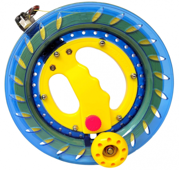 • Easy to Use Kite Reel, Easy Flying Kites. A good kite wheel will make kite flying much easier, this kite wheel is 8 inches in diameter, comes with 1000 feet of kite line with connectors, the kite string can hold up to 50 pounds and can fly all kites up to 2.4 meters !