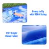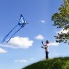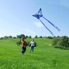 - Large Size & Ready to fly. Butterfly Kite Sized 55″ x 28″ with 4 blue tails each side, could fold into just 18″ durable and nice-looked pack bag, comes with 300ft kite string, ready to fly! It would be a easy and wonderful travel for your family vacation to the beach or field.