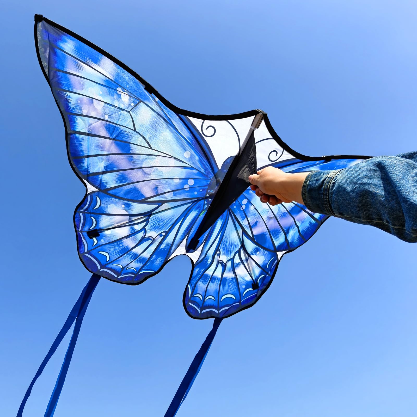 - Beautiful Butterfly Design.This kite features a classic butterfly kite design, which is very pretty with the bright blue color, flapping its wings in the sky like a real butterfly. Whether you are a or an adult, this kite is designed to be fun for everyone.