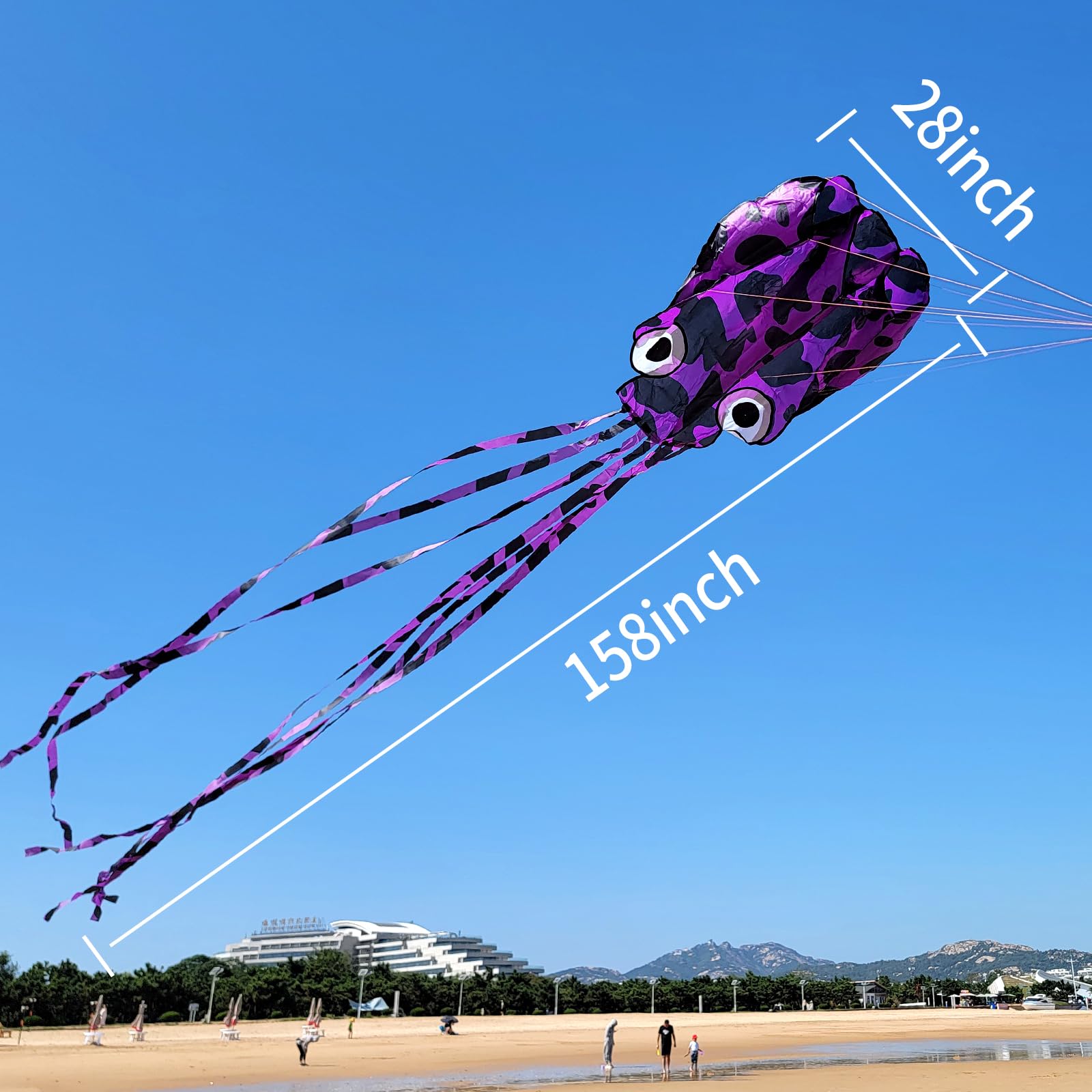 - Durable & Large Size. Handmade with high quality nylon fabric, lightweight but durable. This super kit includes everything you need: 28*158 inch octopus kite,300ft kite string with handle. Take it Enjoy the happy family time with your kids!