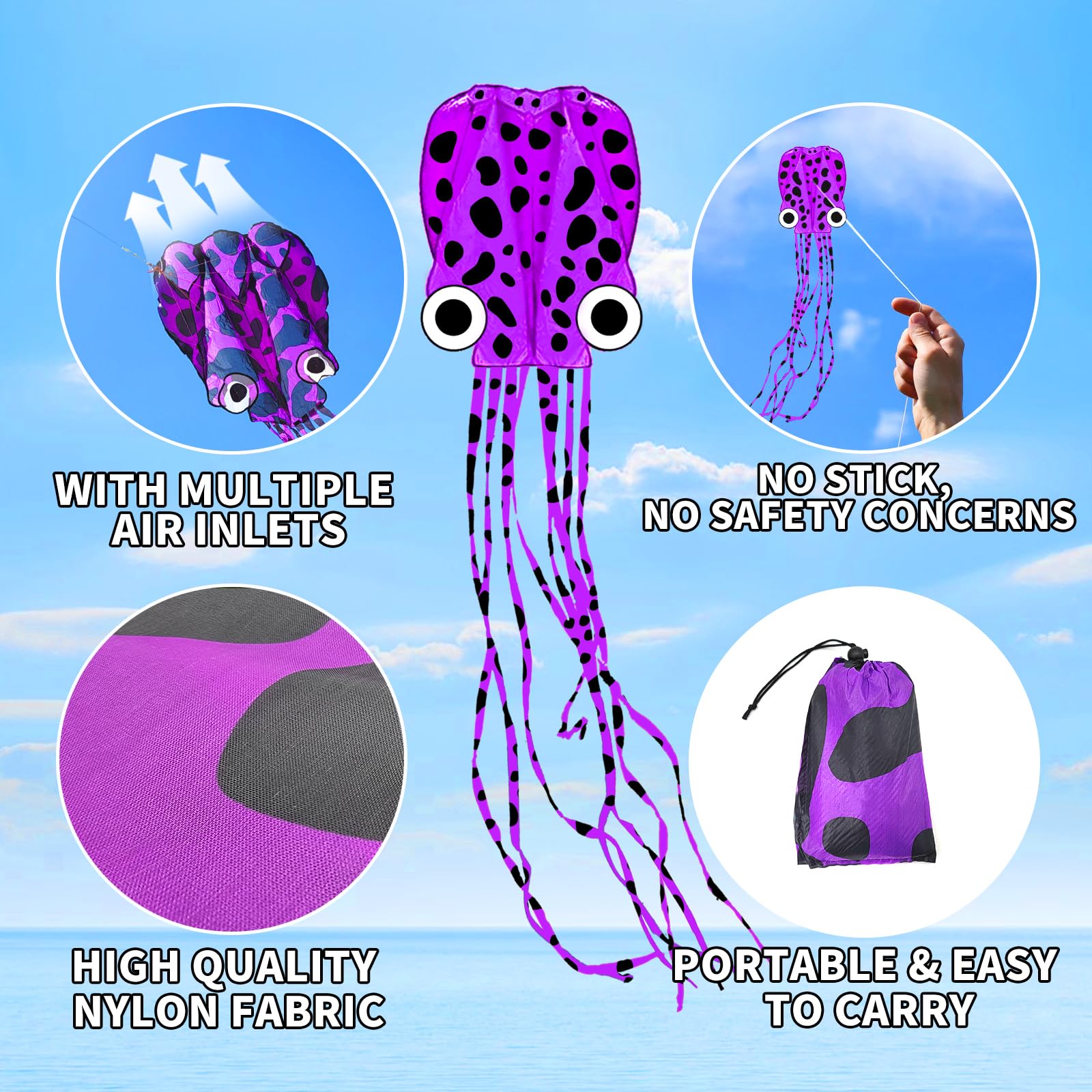 - Easy to Fly for all ages. Fully tested for the balance and flying show, the large octopus is easy to fly even in the light breeze, and could be easily handled by beginers, adults, toddlers, boys and girls. anyone can get these to fly!